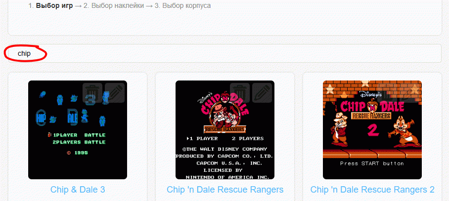 Подсказка: Для фильтрации по названию можно воспользоваться строкой поиска, расположенной над списком игр. Например, если хотите найти все игры Chip & Dale, начните вводить в неё chip, что позволит скрыть те игры, в названии которых отсутствует слово chip.