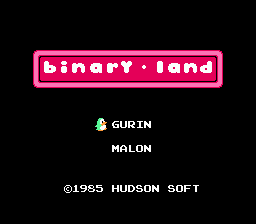 Binary Land — это классическая аркадная игра, выпущенная для NES в 1985 году компанией Hudson Soft. Игра представляет собой головоломку с элементами платформера, где игроку предстоит управлять двумя пингвинами одновременно, чтобы спасти своих возлюбленных. Название игры, Binary Land, отсылает к её уникальной механике, основанной на двоичной логике, где управление двумя персонажами требует от игрока стратегического мышления и координации.