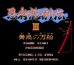 Америка: Ninja Gaiden III: The Ancient Ship of Doom, Япония: Ninja Ryukenden III: Yomi no Hakobune (忍者龍剣伝Ⅲ 黄泉の方船), Китай: 忍者龙剑传三代