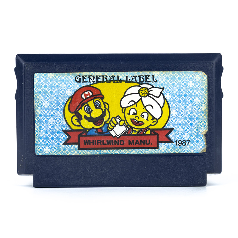 Ранняя и крайне редкая пиратка от Whirlwind Manu выпуска 1987-1988 года. Под этой наклейкой могла быть совершенно любая игра.