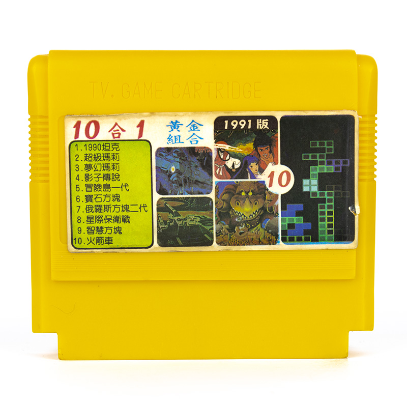 10 в 1: Tank 1990, Super Mario, Legend of Kage, Adventure Island 1, Tetris 2, Gradius, Flipull, Jewelry, Road Fighter