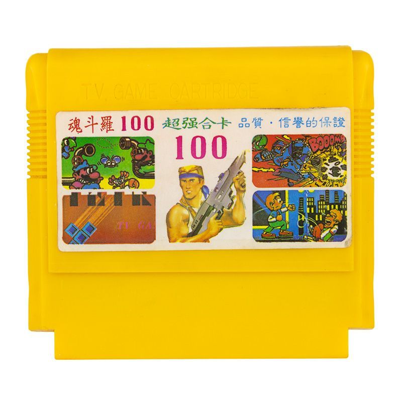 100 в 1: Contra, Arkanoid, Tetris 1, Tetris 2, Super Mario, Bomberman, Popeye, Donkey Kong 1, Donkey Kong 3, Wild Gunman, Duck Hunt, Hogans Alley, Pinball, F1 Race, Urban Champion, Baloon Fight, Baseball, Ice Climber, Mappy, Galaxian, Galaga, Antarctic Adventures, Chack'n Pop, Star Force, Pac-Man, Warpman, Battle City, Field Combat, Pooyan, Sky Destroyer, Binary Land, Macross, Lode Runner