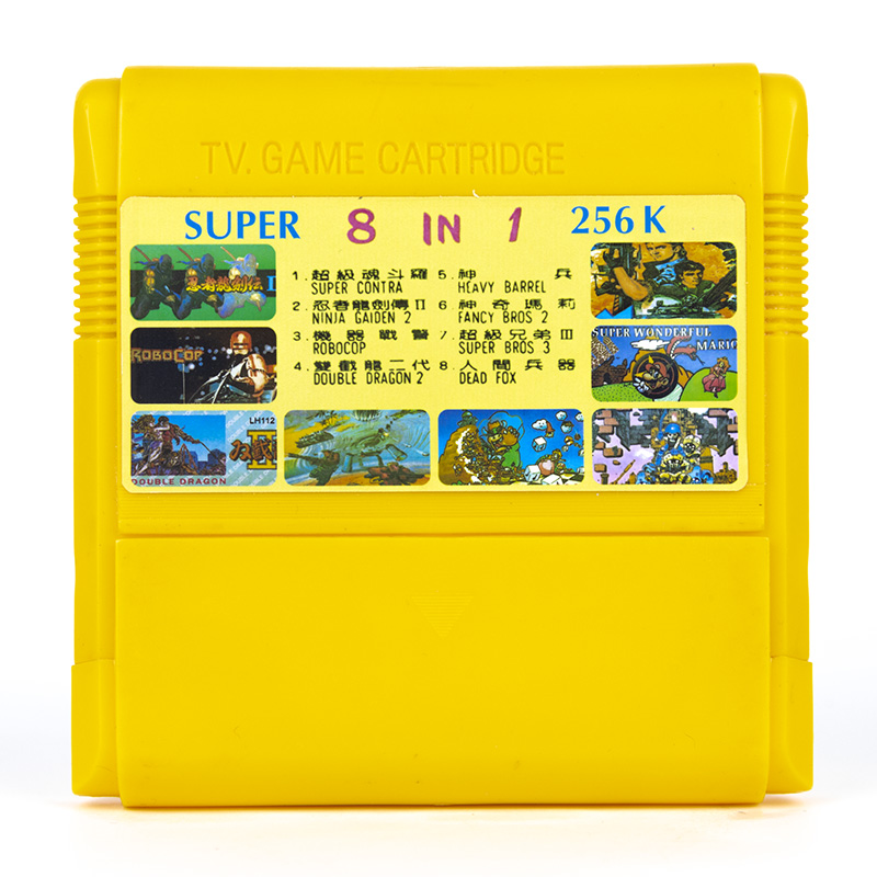 8 в 1: Super Contra, Ninja Ryukenden 2, Robocop 1, Double Dragon 2, Heavy Barrel, Super Mario Bros 2, Super Mario Bros 3, Dead Fox
