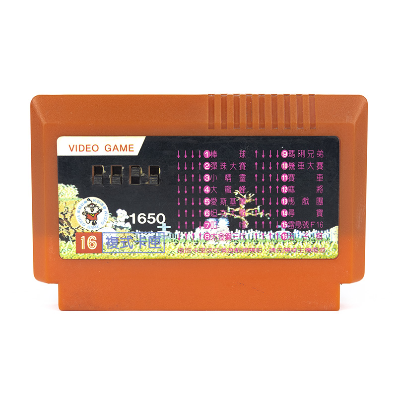 16 в 1: Baseball, Pinball, Pac-Man, Galaxian, Ice Climber, Battle City, Dig-Dug, Donkey Kong 3, Mario Bros., Excitebike, F-1 Race, Mahjong, Circus Charlie, Clu Clu Land, Star Force, Gobang