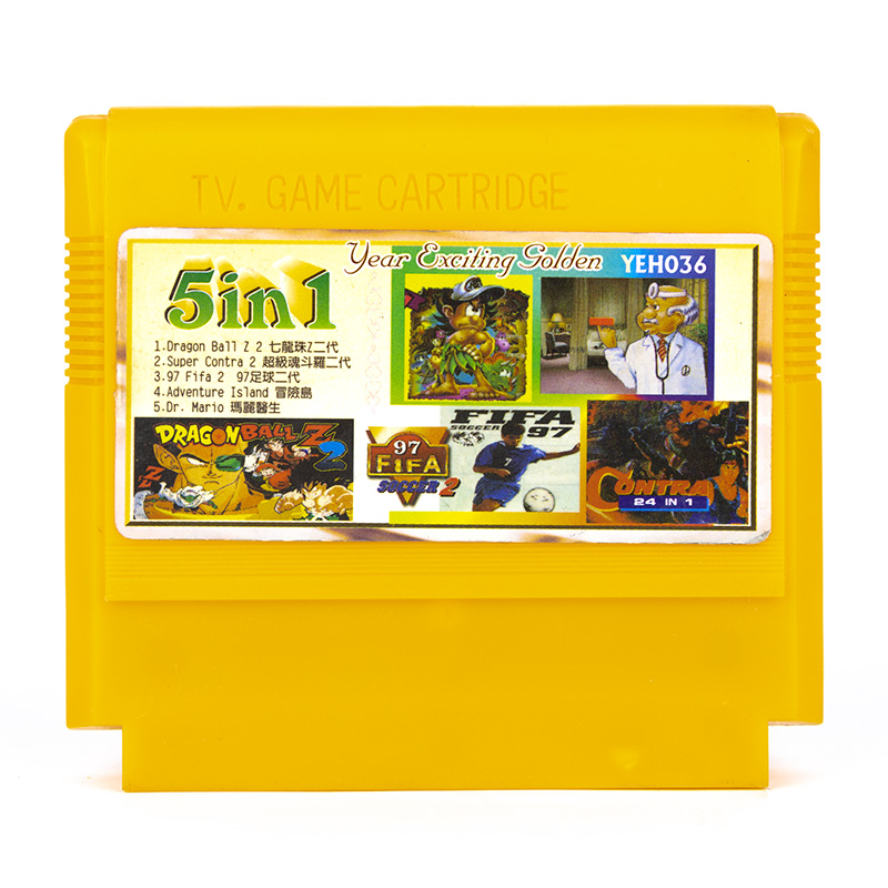 5 в 1: [YEH036] Dragon Ball Z 2, Super Contra, FIFA 97, Adventure Island, Dr. Mario