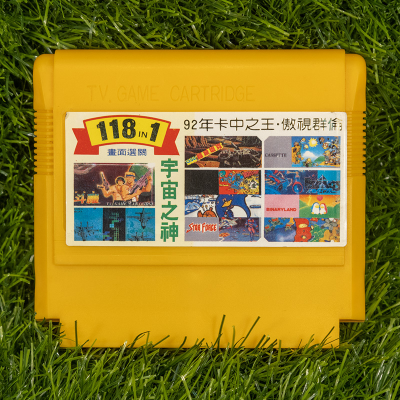 118 в 1: Contra, Super Mario, Galaxian, Road Fighter, Ninja 1, Field Combat, Antarctic Adventure, Circus Charlie, Binary Land, Bomberman, Ice Climber, Tetris 2, Tank 1991, B-Wings, Excite Bike, Duck Hunt, Wild Gunman, Hogans Alley, Galaga, Warpman, Mappy, F1-Race