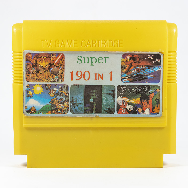 190 в 1: Contra, Super Mario, Ninja 1, Antarctic Adventure, Field Combat, Galaxian, Road Fighter, Circus Charlie, Binary Land, Bomberman, Ice Climber, Tetris 2, Pac-Man, B-Wings, Tank 1991, Mappy, Yie Ar Kung Fu, Ninja 3, 1942, Xevious, Thexder, Dig Dug