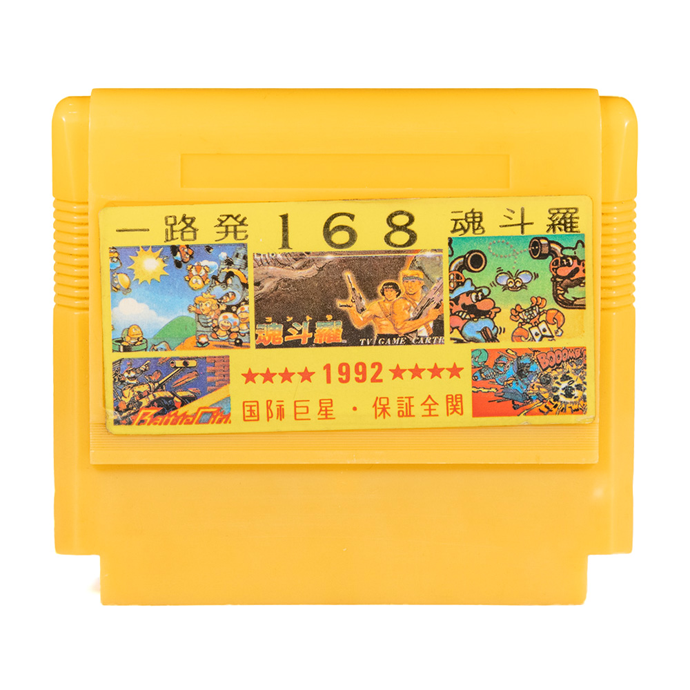 168 в 1: Contra, Arkanoid, Tetris 1, Tetris 2, Mario Bros, Bomberman, Popeye, Donkey Kong, Donkey Kong 3, Wild Gunman, Duck Hunt, Pinball, etc...