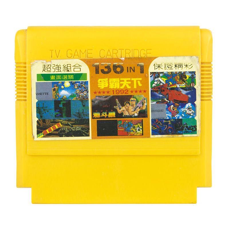 136 в 1: Contra, Super Mario, Galaxian, Road Fighter, Ninja 1, Field Combat, Antarctic Adventure, Circus Charlie, Binary Land, Bomberman, Ice Climber, Tetris 2, Tank 1991, B-Wings