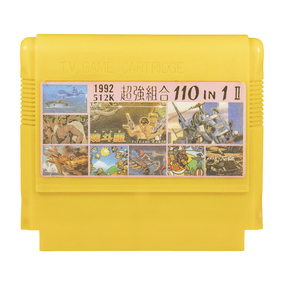 110 в 1: Contra, Twin Eagle, Legendary Wings, 1943, 1944, Tank 1990, B-Wings, Super Mario, Xevious, Road Fighter, Bomberman, Galaxian, Baloon Fight, Exerion, Star Force, Pacman, Pooyan