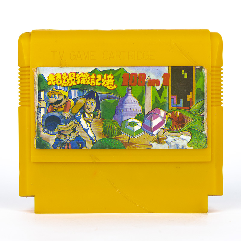 108 в 1: Adventure Island, Gradius, Star Soldier, Goonies, Legend of Kage, Tetris (Tengen), Super Mario, Twin Bee, Ninja Jajamaru-kun, City Connection, B-Wings, 1942, Spartan, Bomber Man, Front Line, Lunar Ball, Golf, Baseball, Pinball, Gobang, Lode Runner 1, Lode Runner 2, Mahjong 2, Mahjong 4, Nuts and Milk, Macross, Star Force, Yie Ar Kung Fu, Ninja-kun: Majou no Bouken, Mario Bros, Donkey Kong 1, Donkey Kong 2, Donkey Kong 3, Mappy, Excite Bike, F-1 Race, Road Fighter, Popeye, Galaga, Pac-Man, Galaxian, Ice Climber, Exerion, Wrestle, Battle City, Sky Destroyer, Baloon Fight, Formation Z, Pooyan, Circus Charlie, Karateka, Arabian, Antarctic Adventure