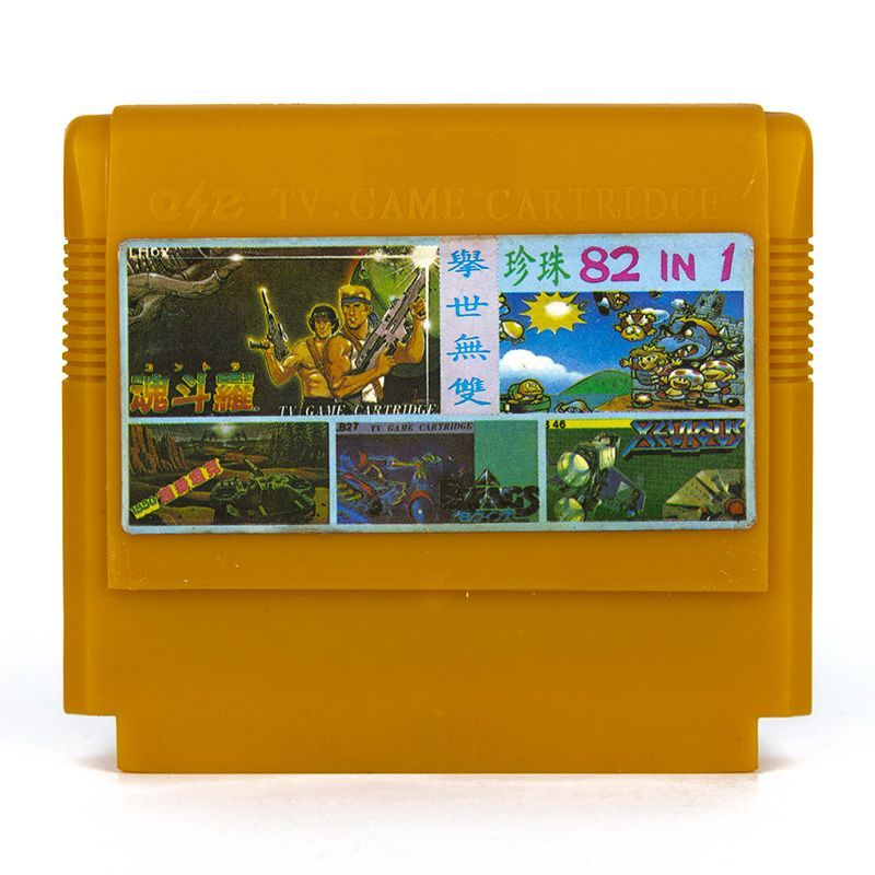 82 в 1: Contra, B-Wings, Super Mario, Xevious, Road Fighter, Bomberman, Galaxian, Balloon Fight, Donkey Kong 3, Star Force, Exerion, Pacman, Pooyan, Circus Charlie, Excitebike, Duck Hunt, Wild Gunman, Hogans Alley, Tank 1991