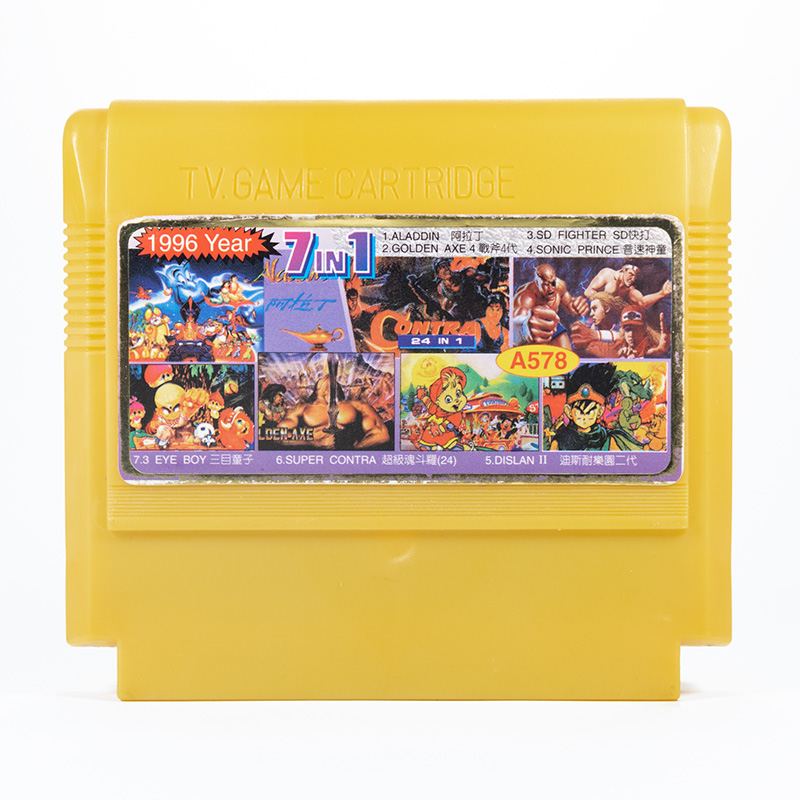7 в 1: [A578] Banana Prince, Disneyland Adventures 2, Aladdin, Golden Axe 4, Mighty Final Fight, Super Contra, 3 Eyes Boy