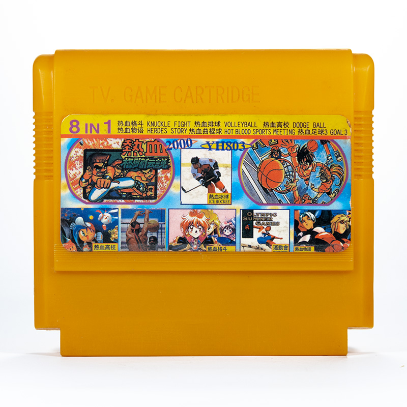 8 в 1: [YH803] Nekketsu Kakutou Densetsu, Dodge Ball, Downtown Nekketsu Monogatari, Bikkuri Nekketsu Shin Kiroku! Harukanaru Kin Medal, Ike Ike! Nekketsu Hockey Bu, V-Ball, Goal 3, Nekketsu! Street Basket: Ganbare Dunk Heroes