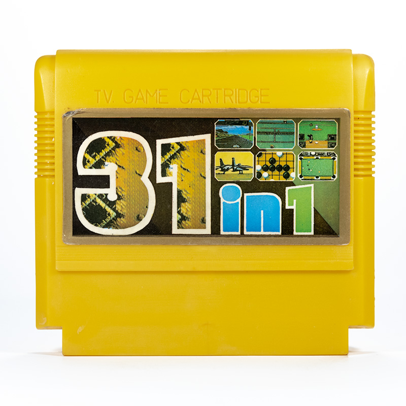 31 в 1: Super Mario, Mario Bros, Yie Ar Kung Fu, Circus Charlie, Exerion, Ice Climber, Balloon Fight, Macross, Arabian, Popeye, Tennis, Galaga, Ninja 1, Mappy, Baseball, Pac-Man, Tag Team Wrestling, Urban Champion, Galaxian, Karateka, Pinball, Sky Destroyer, Donkey Kong, Gobang, Lunar Ball, Road Fighter, Excite Bike, Zippy Race, Formation Z, Star Force, Battle City