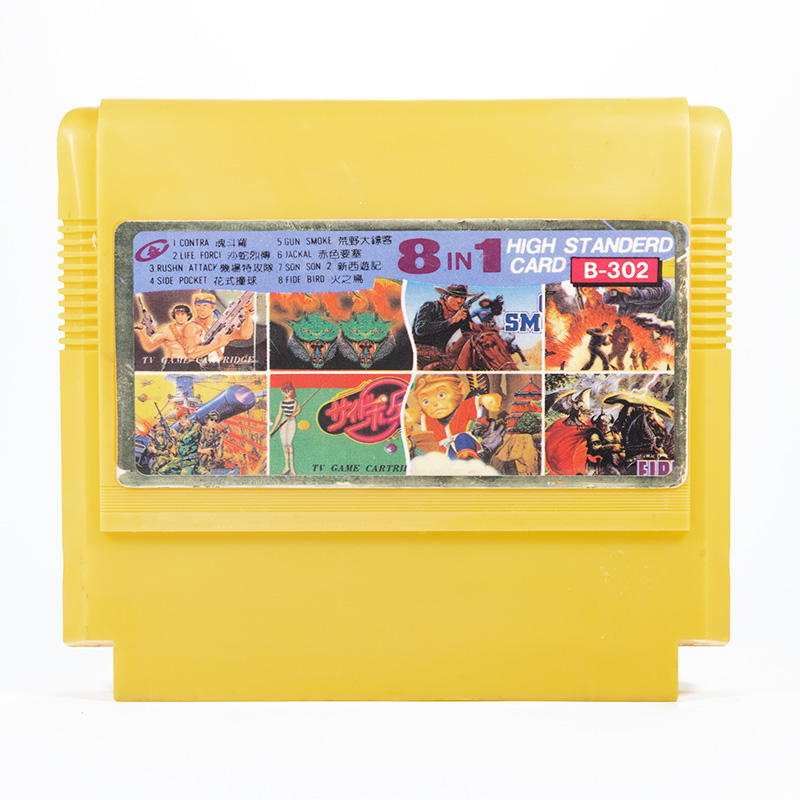 Картридж 8 в 1: [B-302] Contra, Life Force, Rush'n Attack, Side Pocket, Gun.Smoke, Jackal, New Son Son, Fire Bird