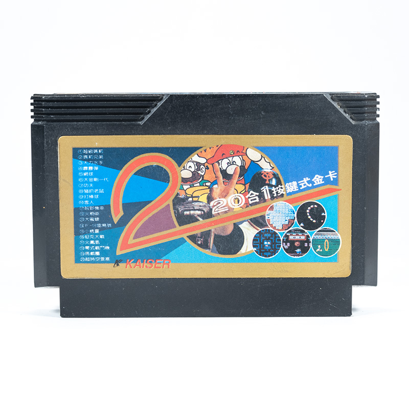20 в 1: Super Mario, Mario Bros, Popeye, Pinball, Tennis, Donkey Kong, Yie Ar Kung-Fu, Mappy, Baseball, Ice Climber, Excite Bike, Road Fighter, Galaga, Star Force, Pac-Man, Battle City, Exerion, Sky Destroyer, Circus Charlie, Macross