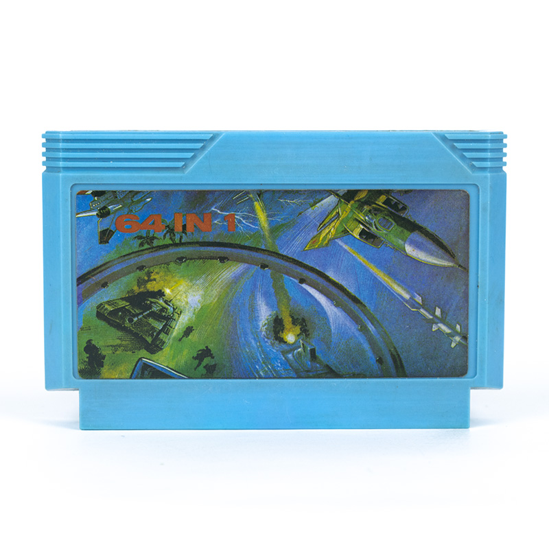 64 в 1: Pacman, Galaga, Dig Dug, Urban Champion, Front Line, Milk Nuts, Popeye, Balloon Fight, Joust, Excite Bike, Pinball, Donkey Kong JR, Circus Charlie, Mappy, Millipede, Arabian, Tennis, Antarctic Adventure, Macross, Baseball, Lunarball, Chack'n Pop, Lode Runner, Kung-Fu, Ikki, Road Fighter, F1 Race, Exerion, Field Combat, Formation Z, Super Mario, B-Wings, Twin Bee, 1942, Bomberman, Othello, Star Force, Mahjong 4, Lode Runner 2, Ice Climber, Battle City, Donkey Kong 1, Donkey Kong 3, Space Invaders, Burger Time, Raid On Bungeling Bay, Pooyan, Wild Gunman, Duck Hunt, Hogans Alley, Wrestle, Clu Clu Land, Warpman, Mahjong 2, Sky Destroyer, Binary Land, Devil World, Golf, Karateka, Gobang, City Connection, Ninja 2, Galaxian, Mario Bros