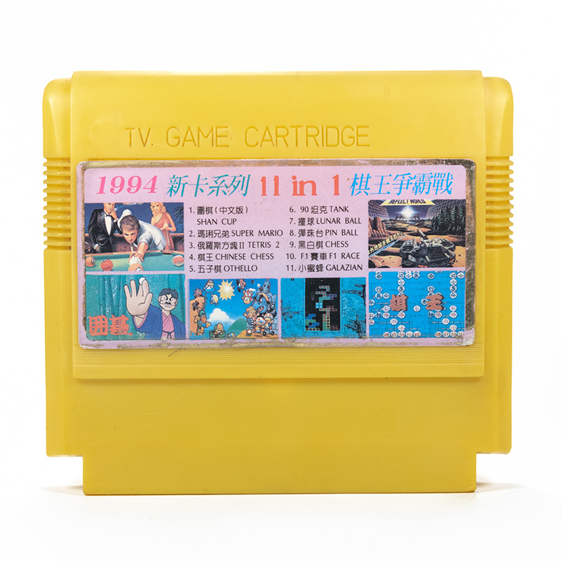 11 в 1: Yan Shan Cup, Super Mario, Tetris 2, Chinese Chess, Othello, Tank 1990, Lunar Ball, Pinball, Gobang, F-1 Race, Galaxian