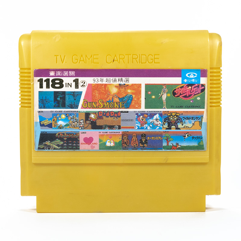 118 в 1: Gun.Smoke, Side Pocket, Tetris 2, Duck Hunt, Wild Gunman, Hogans Alley, Super Mario, Dig Dug, Ice Climber, Binary Land, Galaxian