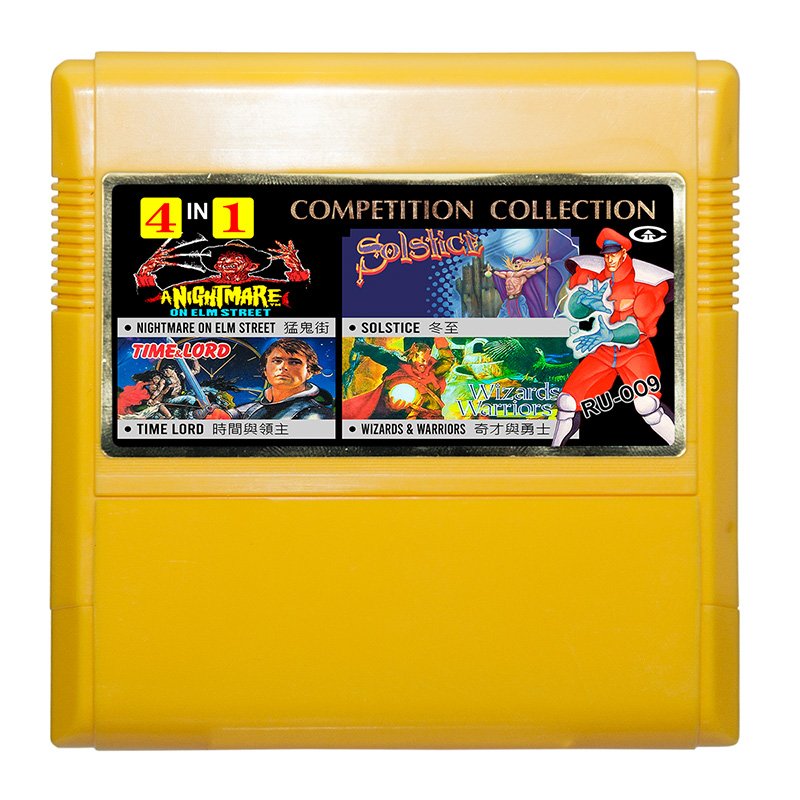 Картридж-реплика 4 в 1: [RU-009] Nightmare on Elm Street, Solstice, Time Lord, Wizards & Warriors 1