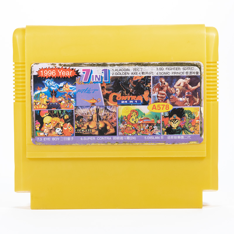 Картридж 7 в 1: [A578] Banana Prince, Disneyland Adventures 2, Aladdin, Golden Axe 4, Mighty Final Fight, Super Contra, 3 Eyes Boy