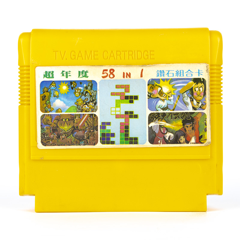 Картридж 58 в 1: Adventure Island, Gradius, Star Soldier, Goonies, Legend of Kage, Tetris (Tengen), Super Mario, Twin Bee, Ninja 2, City Con