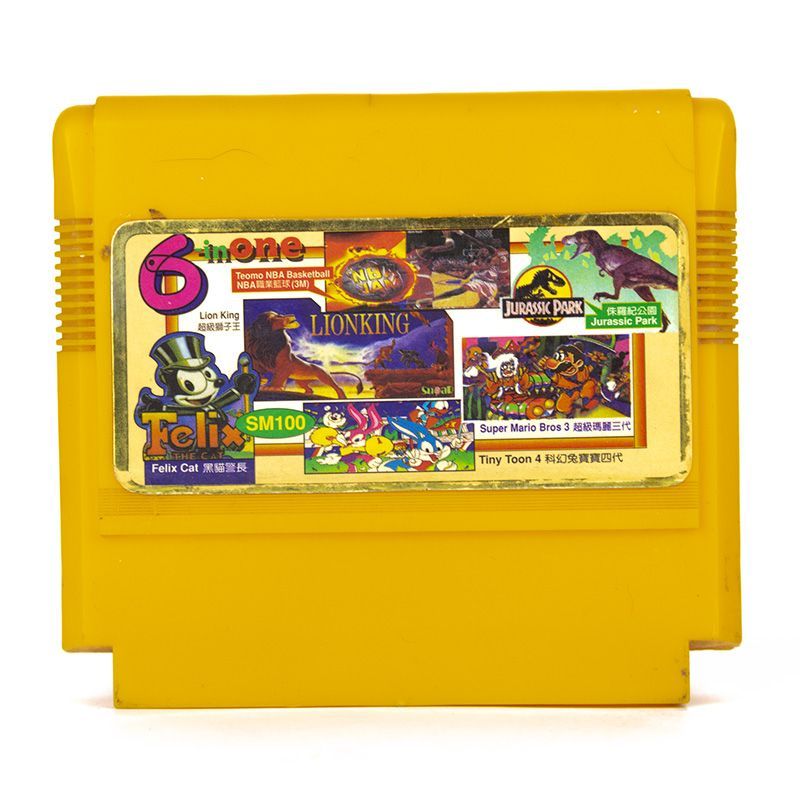 Корпус картриджа 6 в 1: [SM100] Super Mario 3, Jurassic Park, Felix the Cat, Super Lion King, Tecmo NBA Basketball, Tiny Toon 4