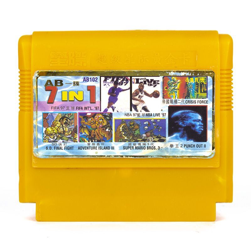 Картридж 7 в 1: [AB102] Super Mario 3, Gun-Nac, Spartan X 2, Tecmo NBA Basketball, Mighty Final Fight, Adventure Island 3, FIFA 97