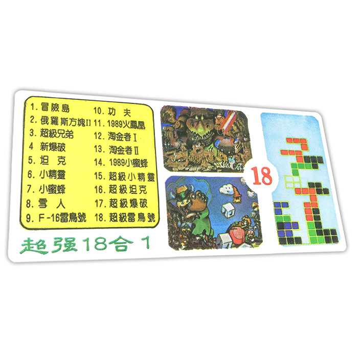 Картридж 18 в 1: [1801] Adventure Island, Tetris 2, Super Mario, Bomberman, Battle City, Pacman, Galaxian, Ice Climber, Star Force, Kung-Fu,