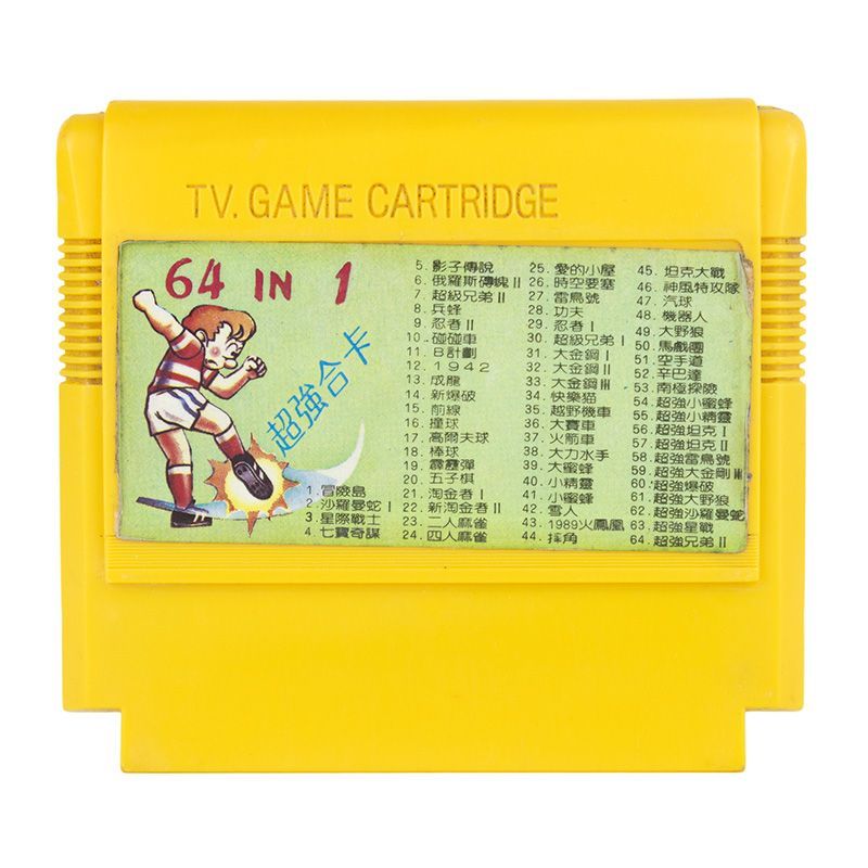 Картридж 64 в 1: Adventure Island, Gradius, Star Soldier, Goonies, Legend of Kage, Tetris (Tengen), Super Mario, Twin Bee, Ninja Jajamaru-ku