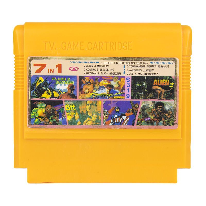 1450 ₽Картридж 7 в 1: [S319] Alien 3, Joe & Mac, Batman & Flash, Contra 6, Captain America, TMNT 4, Street Blaster V 20p