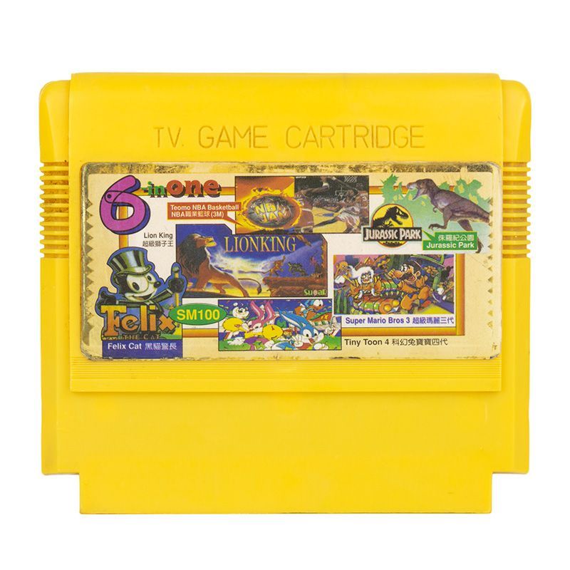 Картридж 6 в 1: [SM100] Super Mario 3, Jurassic Park, Felix the Cat, Super Lion King, Tecmo NBA Basketball, Tiny Toon 4