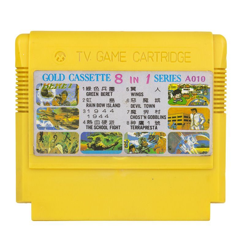 Картридж 8 в 1: [A010] Rush'n Attack, Rainbow Island, 1944, Legendary Wings, Castlevania 1, Ghost'n Goblins, Terra Cresta, School