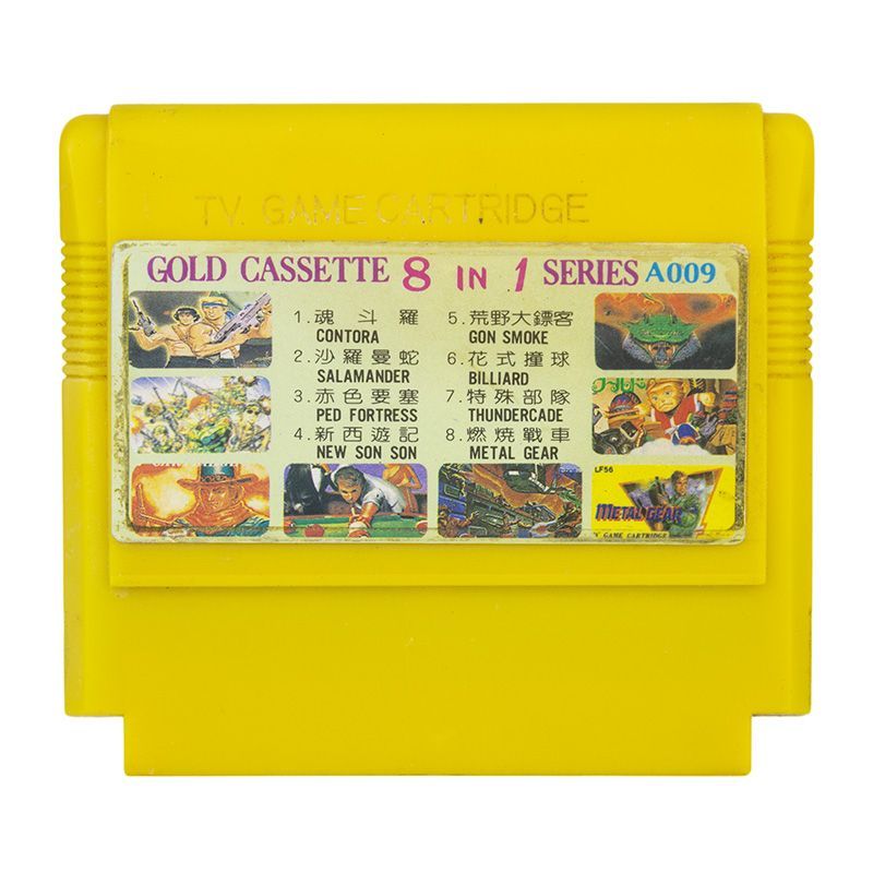 1100 ₽Картридж-реплика 8 в 1: [A009] Contra, Life Force, Jackal, New Son Son, Gun.Smoke, Side Pocket, Thundercade, Metal Gear