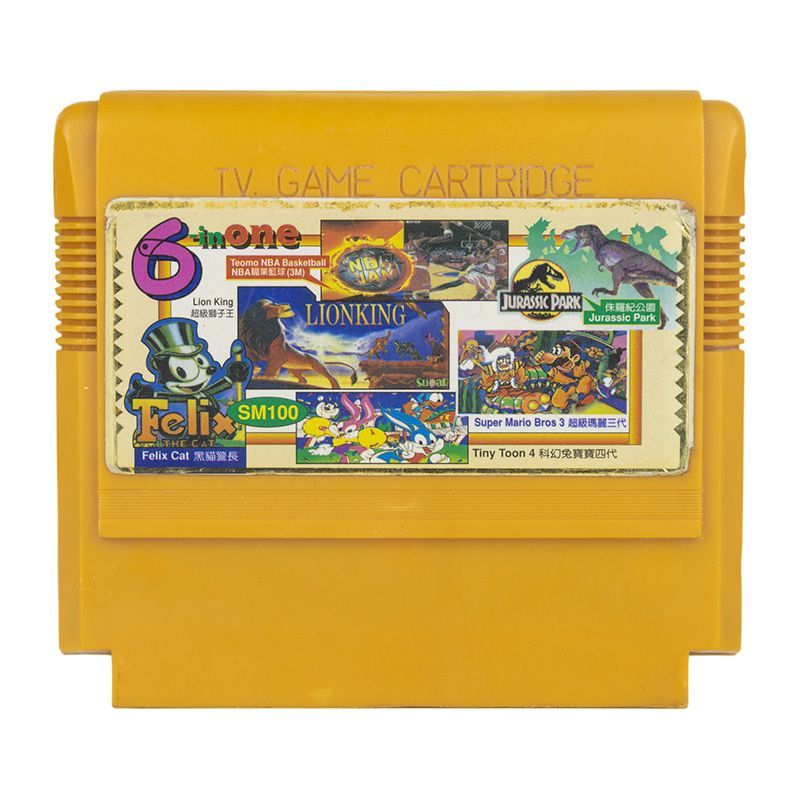 Картридж 6 в 1: [SM100] Super Mario 3, Jurassic Park, Felix the Cat, Super Lion King, Tecmo NBA Basketball, Tiny Toon 4
