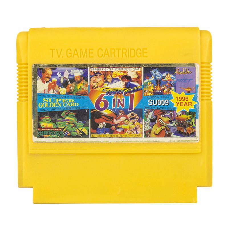 Картридж 6 в 1: [SU009] Panic Restaurant, Wacky Races, TMNT 2, Aladdin, Street Fighter V 20p, Street Fighter 16p