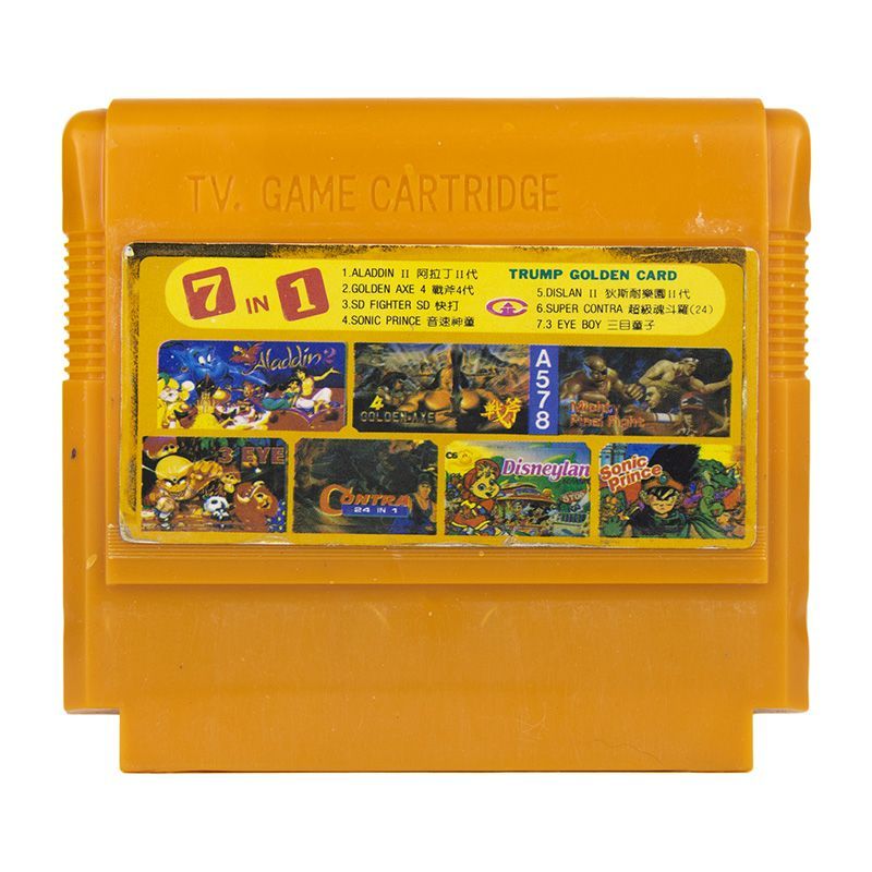 Картридж 7 в 1: [A578] Banana Prince, Disneyland Adventures 2, Aladdin, Golden Axe 4, Mighty Final Fight, Super Contra, 3 Eyes Boy