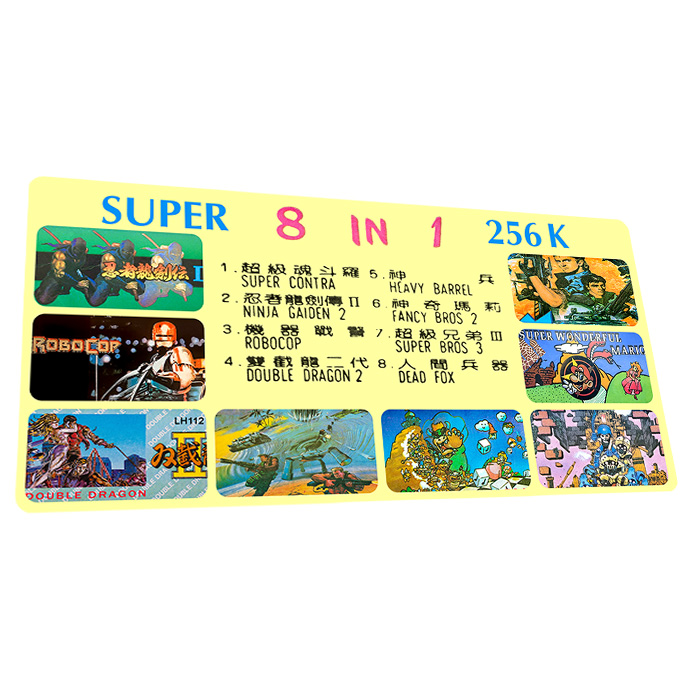Наклейка 8 в 1 Super Contra, Ninja Gaiden 2, Robocop 1, Double Dragon 2, Heavy Barrell, Super Mario 2, Super Mario 3, Dead Fox