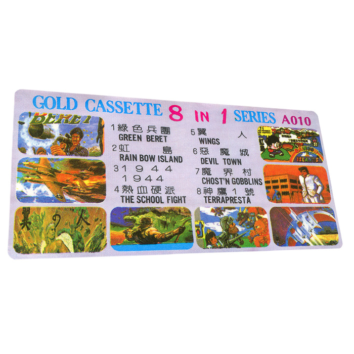 Наклейка 8 в 1 [A-010] Rush'n Attack, Rainbow Island, 1944, School Fight, Legendary Wings, Castlevania 1, Gost'n Goblins, Terra Cr